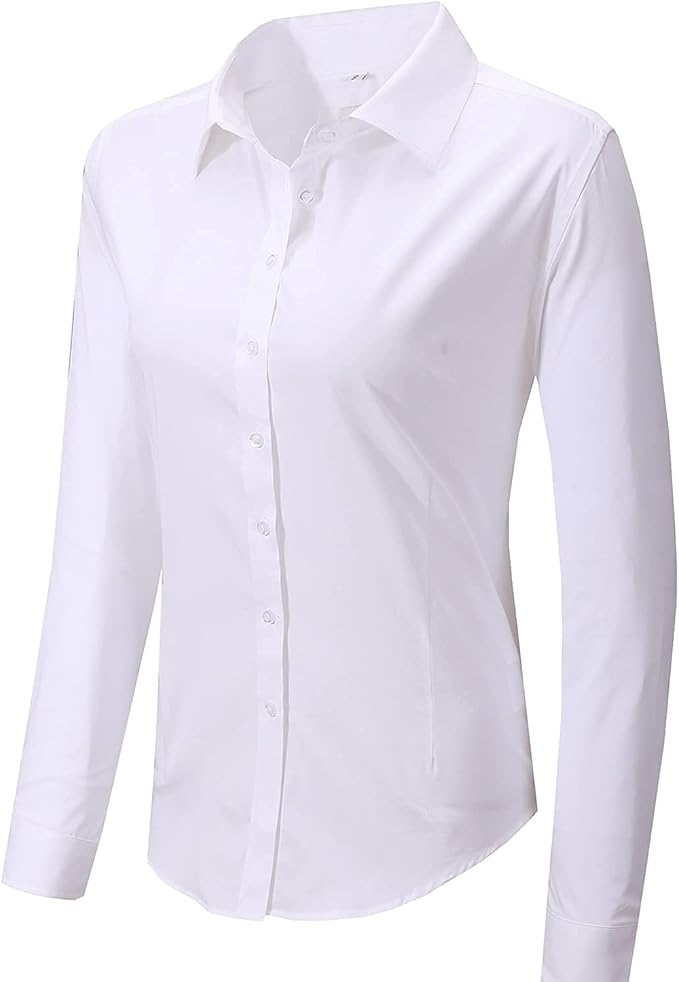Women's Slim-Fit Button Down Shirts Stretchy Cotton Long Sleeve Work Blouse