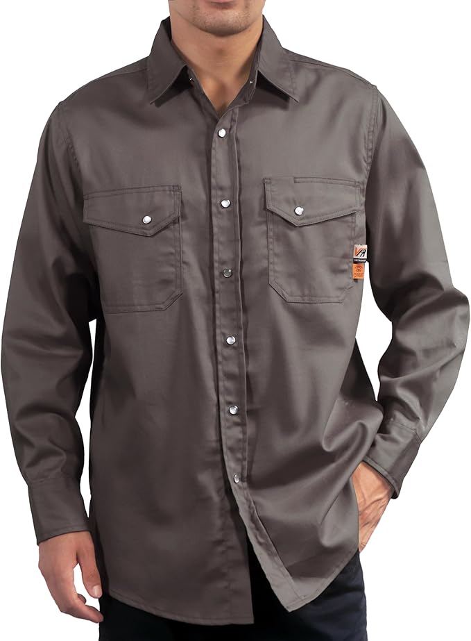 Shirts for Men 6.5oz Button Down Flame Resistant 100% Cotton Men's Pre-Washed Fire Retardant Work Shirt