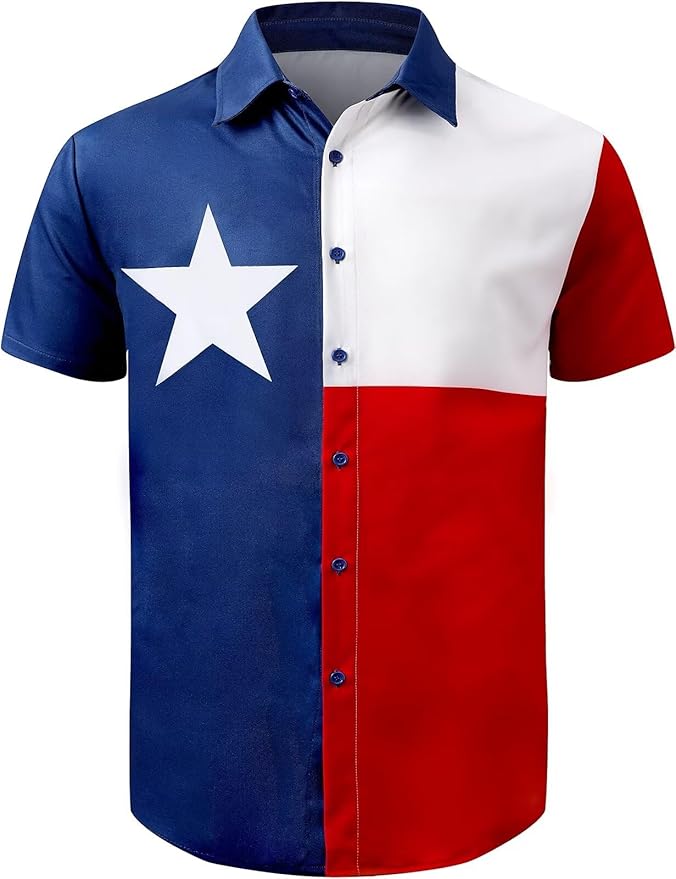 Men's 4th of July Shirt American Flag Texas Flag Button Up Hawaiian Short Sleeve Party Shirt