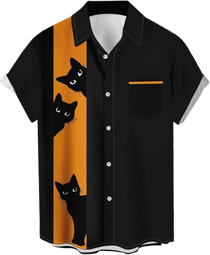 Men's Halloween Shirts Cute Scary Horror Short Sleeve Button Up Shirt