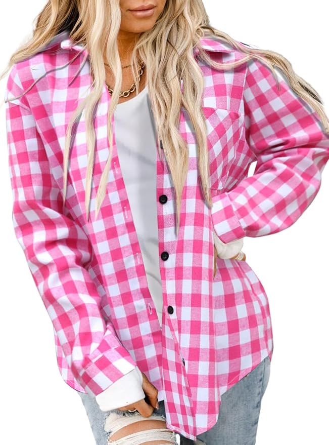 Womens Buffalo Plaid Flannel Shirt Long Sleeve Collar Button Down Blouses Lightweight Tops (S-2XL)