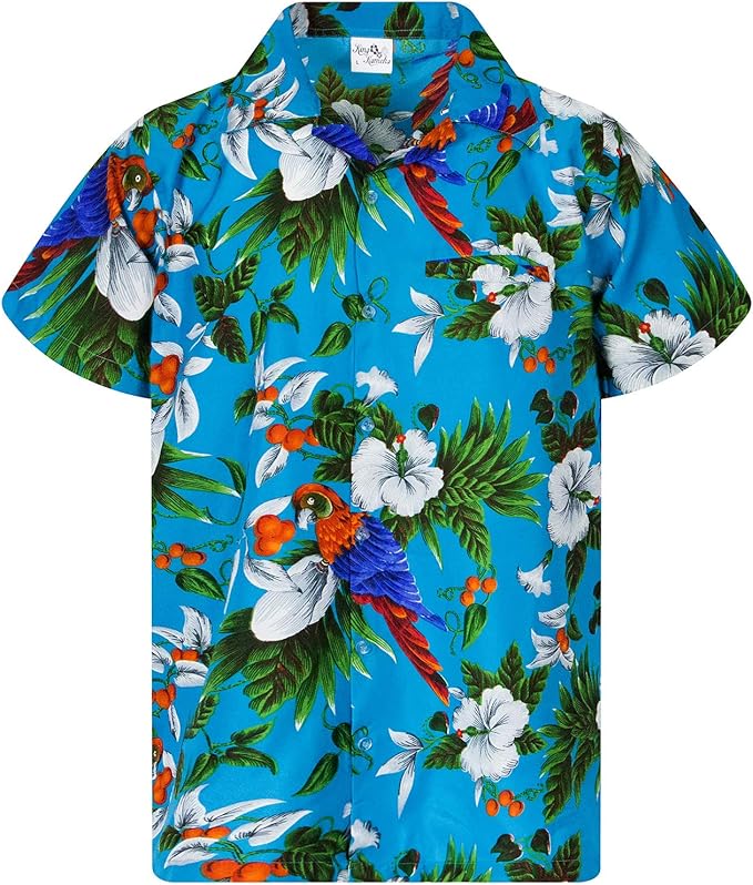 Mens Vintage-Hawaiian-Shirt Casual-Short-Sleeve Button-Down Cherry-Blossoms Parrot-Design